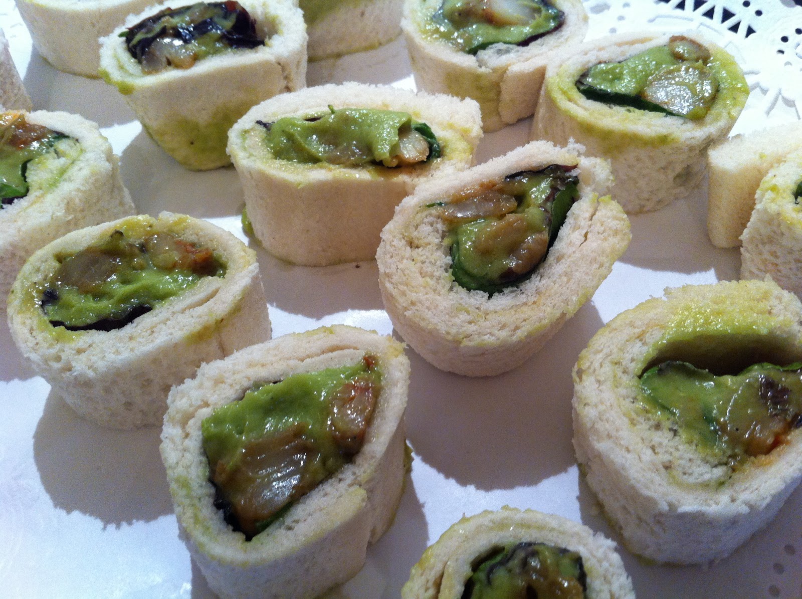 Sobre cada torta colocar 4 lonchas de Roast Beef, regar con la reducción y enrollar. Cortar cada rulo en 4 trozos y emplatar.