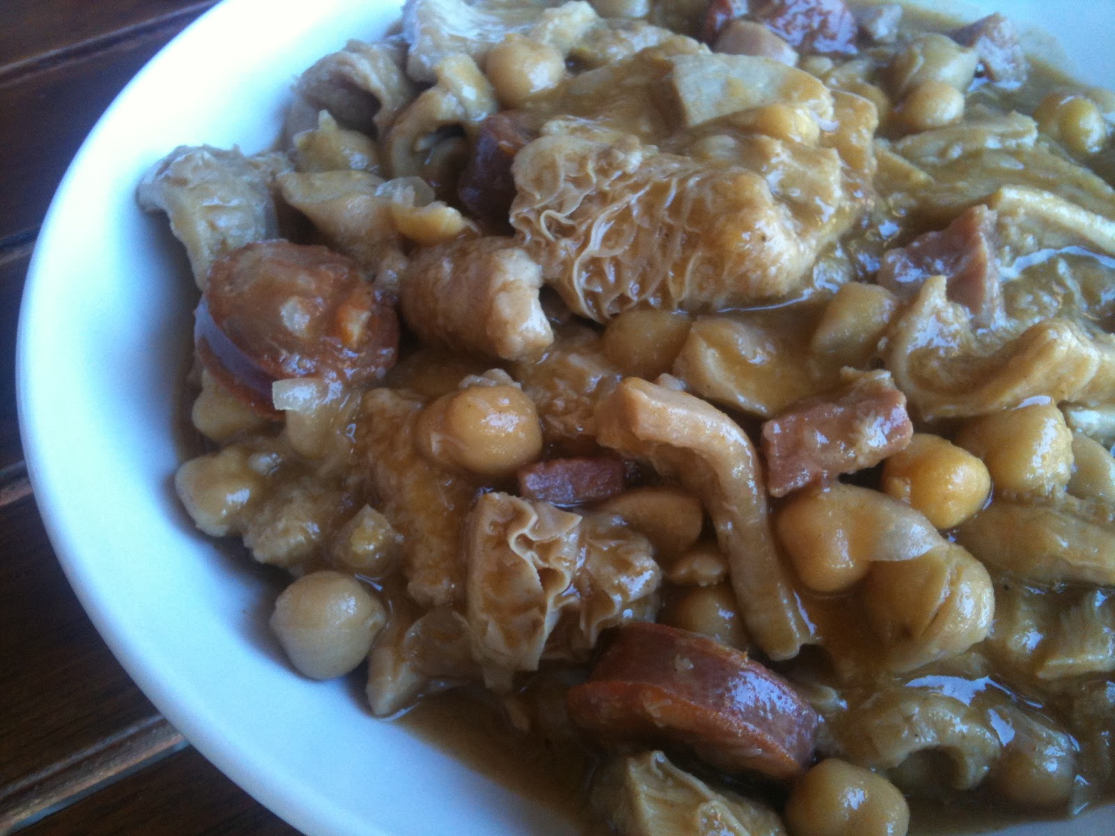 8- Se echan los garbanzos lavados (sin el líquido del bote) y se sigue cociendo todo unos 45 minutos más.