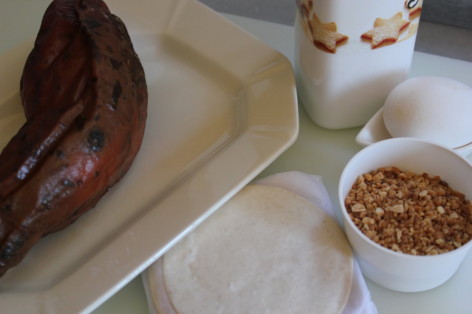 Es necesario preparar la masa con un día de antelación de modo que, el de esta semana, sin ser un menú complicado, si que necesita su tiempo ya que además, para el postre, se beben asar los camotes (boniatos) con los que se elabora también la jornada anterior.