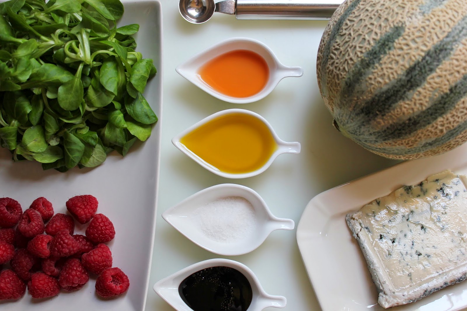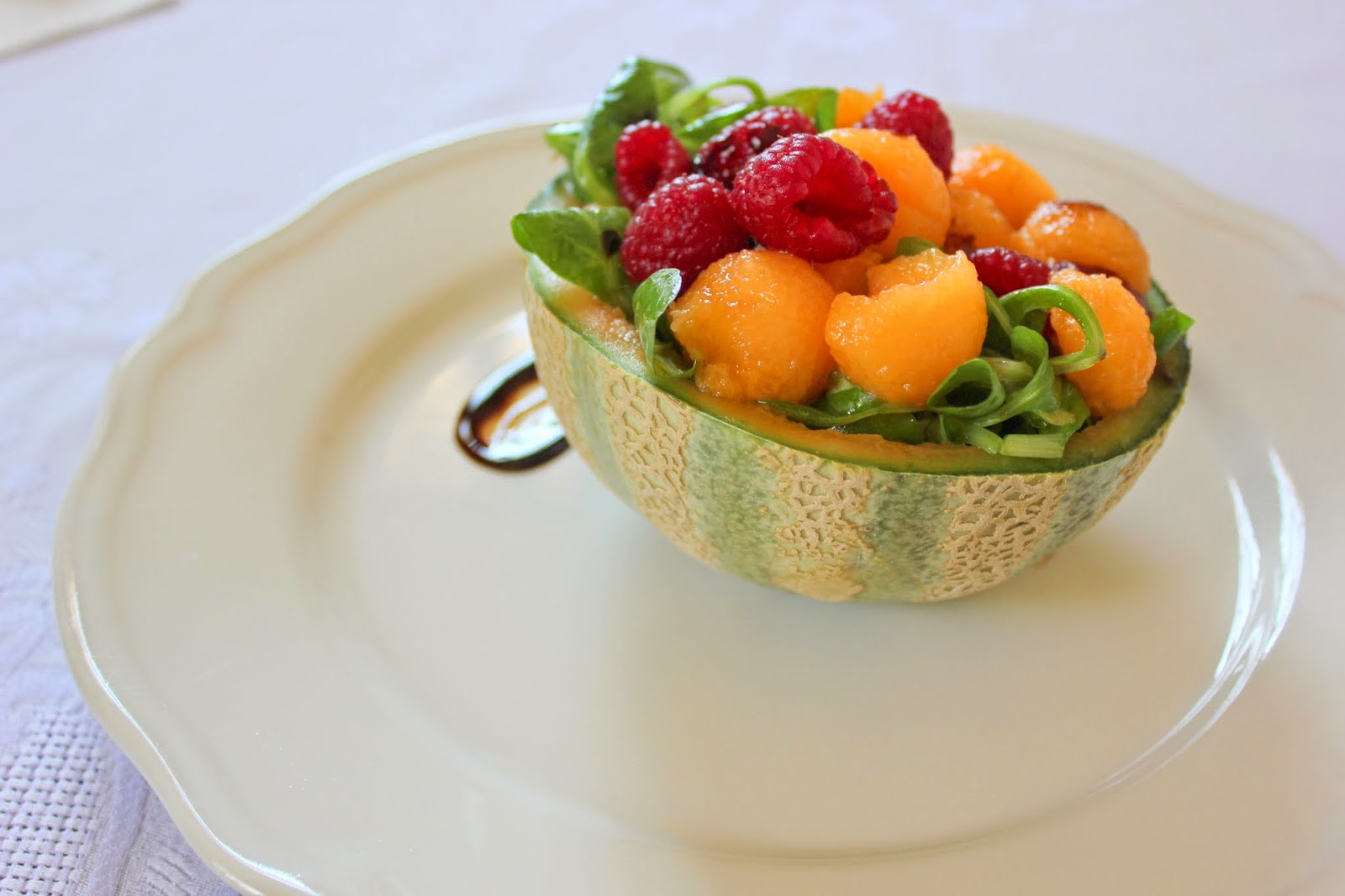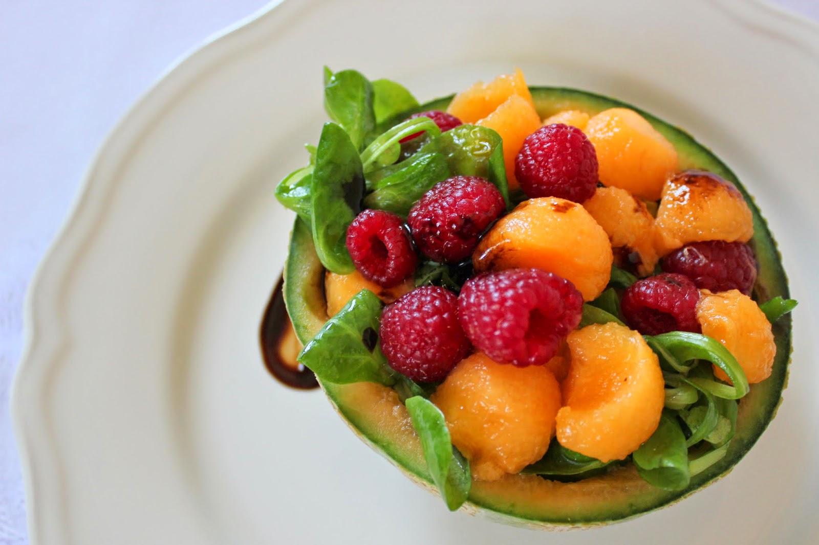 «Ensalada de Cantaloupe con Queso azul y Frambuesas».