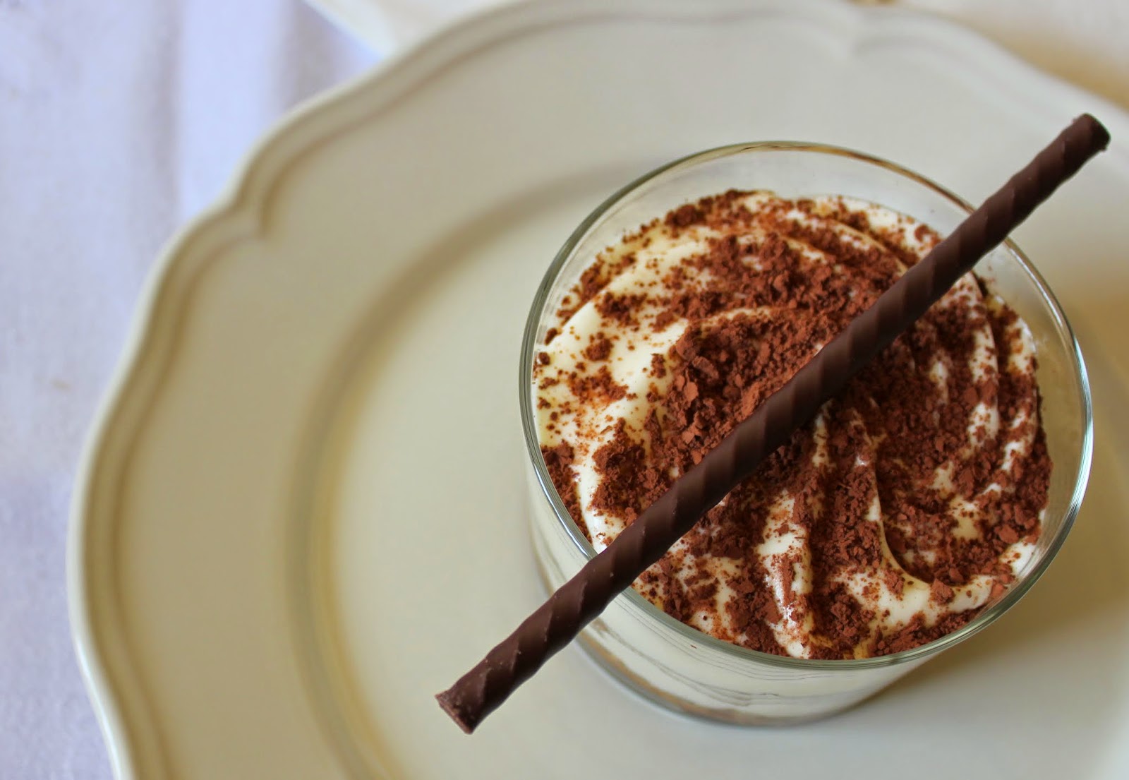 Cortamos los bizcochos en 4 discos cada uno y colocamos uno en el fondo de cada vasito, los empapamos con un par de cucharadas del café ya frío y ponemos encima una capa de la crema de mascarpone. Agregamos una cucharadita de cacao en polvo y repetimos nuevamente la operación terminando con un espolvoreo de cacao y decorando, si se desea, con unos palillos de chocolate.